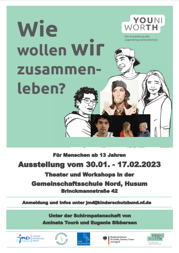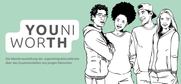 Als ein Angebot für Jugendmigrationsdienste, Schulen und andere interessierte Einrichtungen möchte die JMD-Ausstellung YOUNIWORTH Jugendliche, Fachkräfte und Politik zusammenbringen und begeistern. Die Ausstellung sensibilisiert für die Themen Jugend und Migration und richtet ihren Fokus auf Gemeinsamkeiten und das Zusammenleben in Deutschland. Multimedial, spielerisch und partizipativ bringt die Ausstellung junge Menschen in Austausch und Dialog. Sie ist nicht nur eine Stimme für junge Menschen in unserem Land, sie gibt ihnen auch die Möglichkeit, mit ihrer Stimme teilzuhaben.
